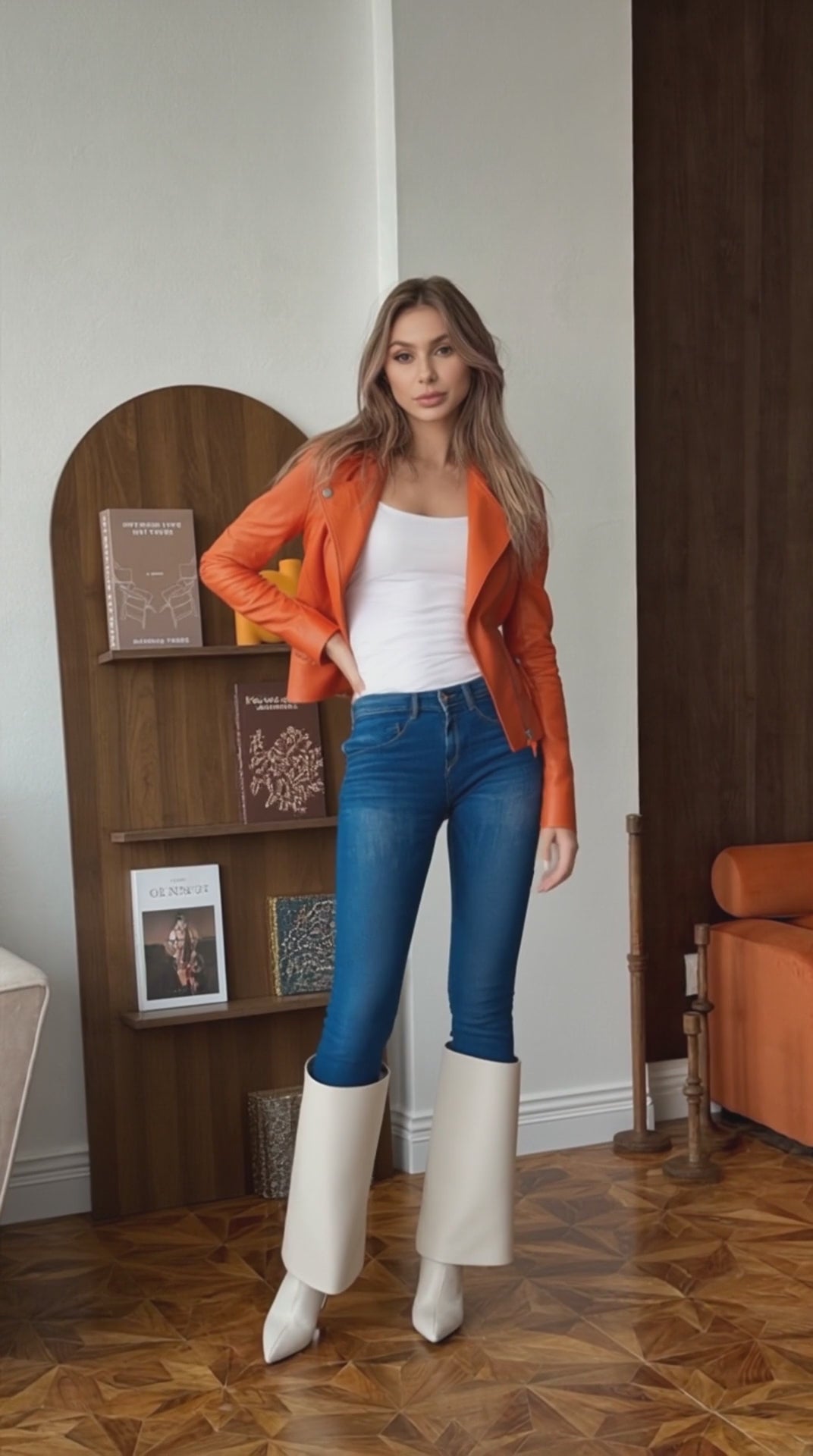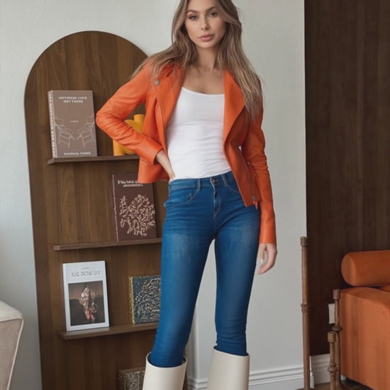 Womens Orange Leather Jacket