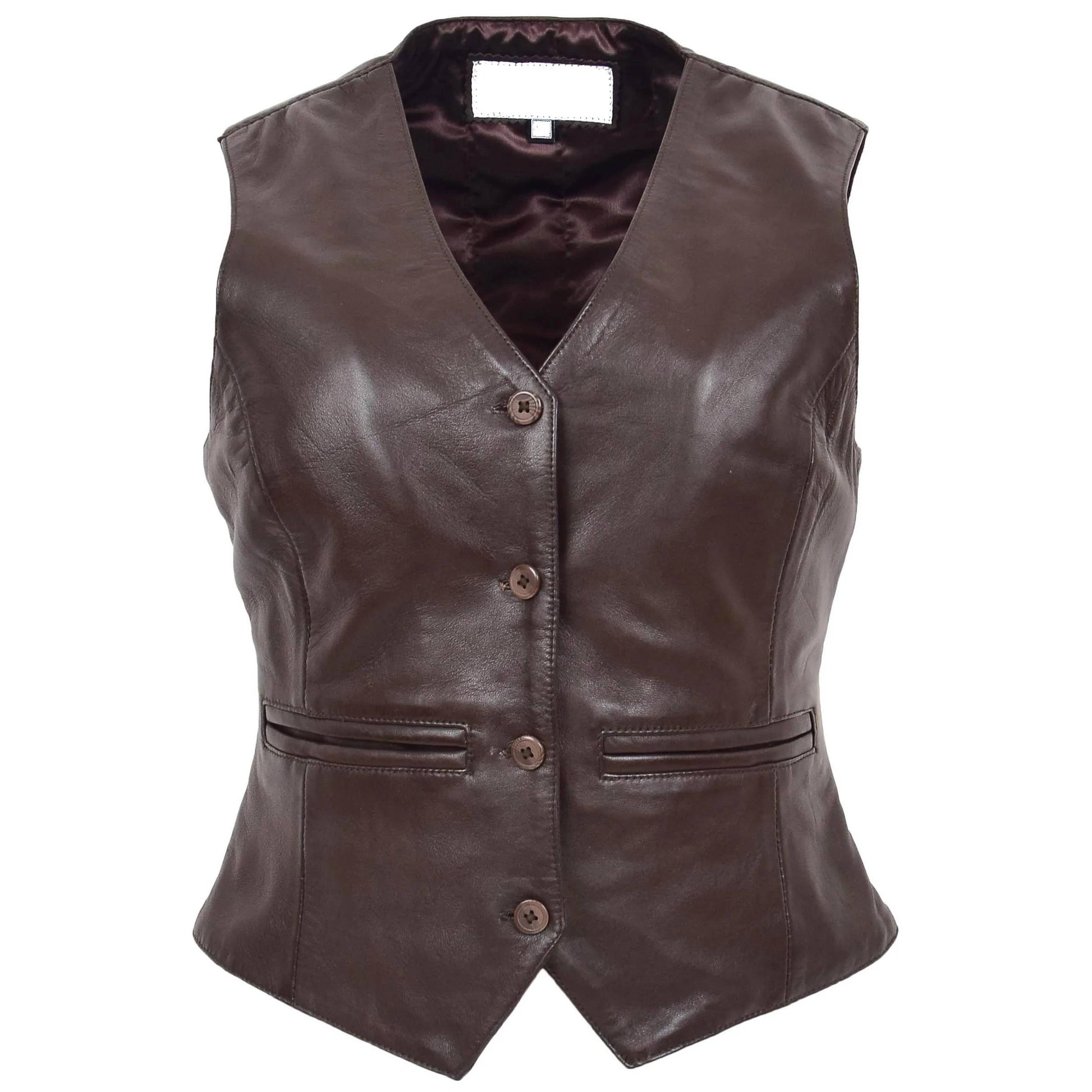Womens Soft Genuine Leather Buttoned Waistcoat